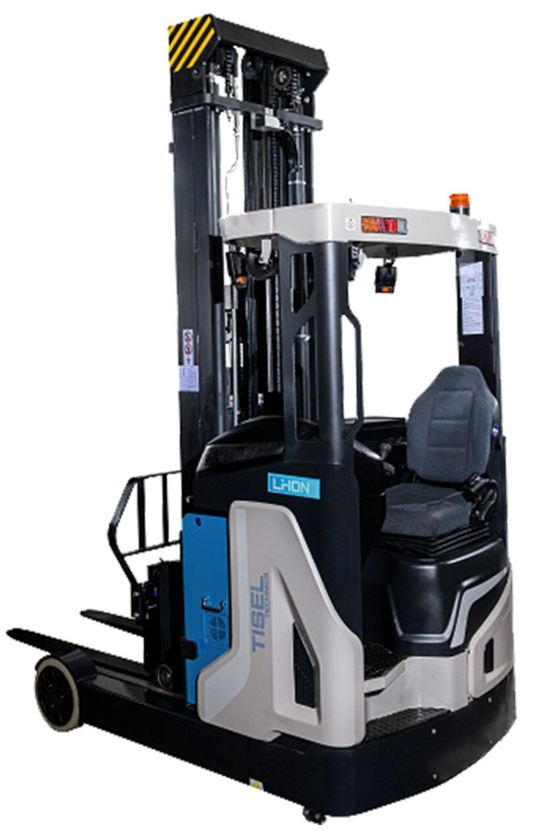 Tisel Technics RTX20 Li-ion – серия надежных ричтраков с Li-ion АКБ 48V/400Ah, способных поднимать груз 2000 кг в зависимости от мачты на высоты в диапазоне 4500 мм – 9500 мм, комфортная кабина, сиденье, снижающее усталость, LED-панель.
