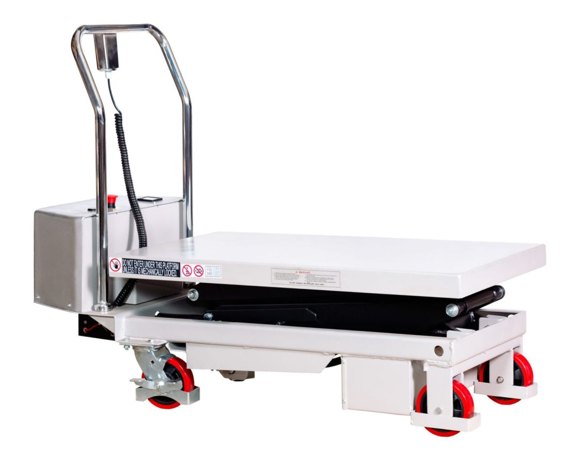 Стол гидравлический передвижной с электроподъёмом Tisel HTE50 надежное качественное решение для перемещения, комплектации и подъема небольших компактных грузов и товаров. Оптимальное решение для работы в небольших складских помещениях с небольшим товарооборотом и малой интенсивностью работы, а также в сервисных центрах, конвейерных и сборочных линиях. Подъемный стол успешно сочетает в себе функционал классических гидравлических подъемных столов с дополнительной мобильностью и маневренностью платформенных и складских тележек.