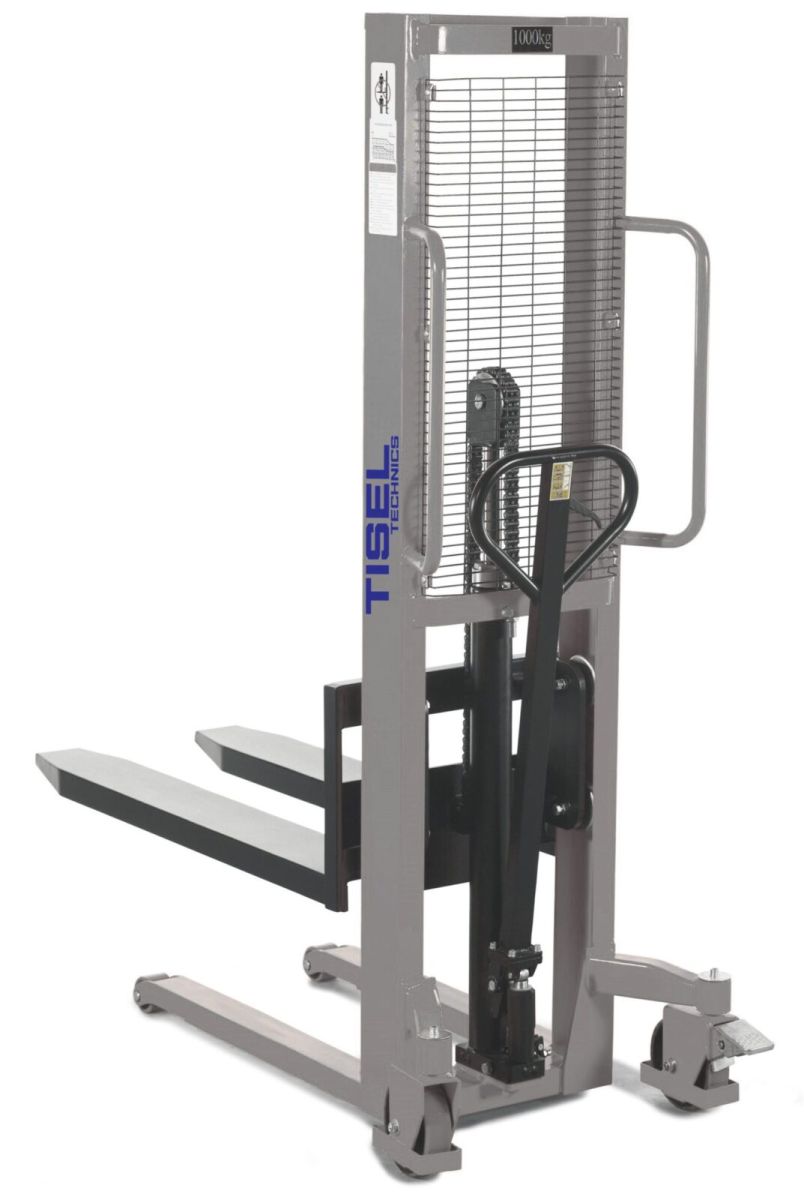 Tisel Technics HS 1030 – гидравлический штабелер с двухсекционной мачтой, с ножным механизмом подъема вил, высота подъема вил на 3 метра, г/п 1 000 кг, остаточная грузоподъемность 600 кг. Хорошо подходит для работы в ограниченных пространствах складов с ограниченным товарооборотом.