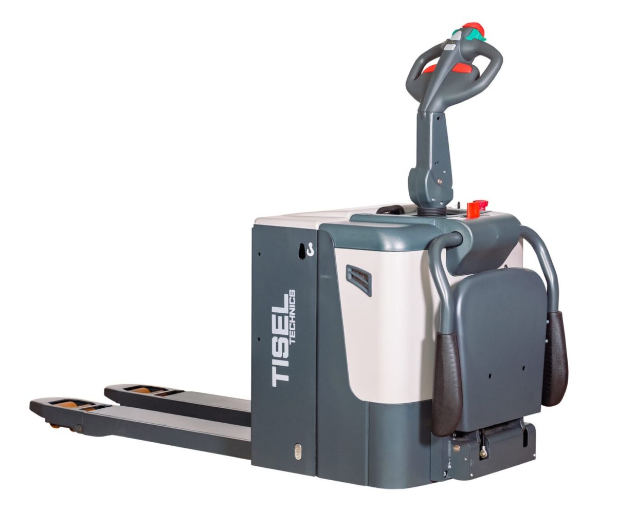 Tisel Technics ET20P – самоходная электрическая тележка с откидной платформой с поручнями, электроусилителем ручки управления, с плавным подъемом и опусканием вил, батарея 24V/210Ah, для паллет весом с грузом до 2000 кг. Установлен датчик присутствия, останавливающий тележку; датчик срабатывает при отпускании рукоятки управления, которая возвращается в вертикальное положение. При сходе оператора с платформы она автоматически поднимается. Имеется кнопка срочной остановки. Минимальные габаритные размеры, высокая маневренность и легкость управления позволяют комфортно работать в малых пространствах, а также среди стеллажных систем с большим количеством секций и коридоров. Это современная и технологичная самоходная тележка, в которой воплощены инновационные решения, высокие уровени безопасности и комфорта. Электрические тележки этой модели охарактеризовали себя исключительной надежностью, практичностью, многофункциональностью и обладают превосходными техническими характеристиками и удобным набором потребительскими свойств. Инновационные разработки применяемые в данной серии транспортировщиков паллет: Система TISEL DRIVE AC® – 24-х вольтная высокочастотная электрическая система управление тягой и крутящим моментом, обеспечивающая точный контроль за скоростью движения и производимыми операциями, максимальную плавность хода, высокую надежность и низкое энергопотребление. Созданная на основе современных технологий AC (технология переменного тока): новые асинхронные двигатели переменного тока под управлением логических модулей управления с системой рекуперативного и регенеративного торможения.
