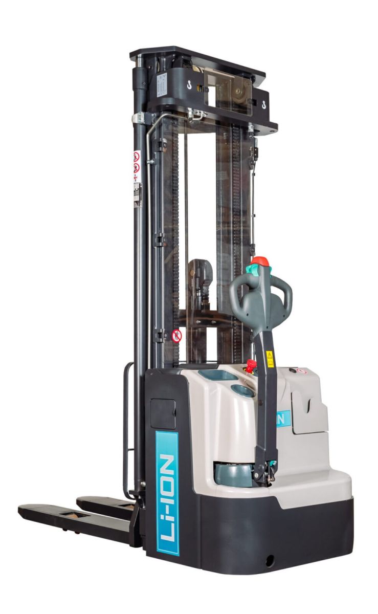 Самоходный электропогрузчик-штабелер Tisel Technics ESL20 Li-Ion DX290 с Li-Ion аккумулятором 24V/200Ah, мачта дуплекс с подъемом вил на 2.9 м, контроллер ZAPI, AC-двигатель хода, ручка управления REMA, пропорциональный подъем / спуск вил, ЖК-дисплей с индикатором уровня заряда аккумулятора, с возможностью отображать сервисные ошибки и счетчиком моточасов, зарядное устройство внешнее, места для хранения бумаг и мелочей, USB порт.