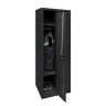 Шкаф металлический для раздевалок двухсекционный ШРД оснащен двумя ключевыми замками (по одному на секцию) типа CAM LOCK с тягами, секретность 2000 комбинаций; четырьмя полками (по две на секцию) — верхней и нижней; перекладинами для вешалок и дополнительной перфорацией для обеспечения проветривания внутренней зоны шкафа. Предназначен для хранения личных вещей, рабочей и сменной одежды в раздевалках производственных помещений, складов, спортивных центров, учебных заведений. Прочная и надежная конструкция шкафа выполнена из листового металла толщиной 0.8 мм., окрашенного износостойкой порошковой краской.