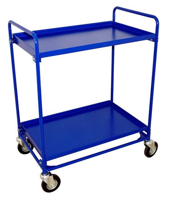 Сервисная тележка СТ - незаменимое оборудование, для перемещения средств уборки, сухого белья, предметов в столовых общепита и т.д. Грузоподъемность тележки рассчитывается из расчета 50 кг. распределенной нагрузки на полку. Полки регулируются по высоте посредством универсальных кронштейнов, что позволяет настроить высоту полок под необходимый уровень.На тележку устанавливаются промышленные поворотные колесные опоры 125 с резьбовой шпилькой М12. Базовая комплектация тележки состоит: - две ручки, - основание, - две полки с бортиком (высота бортика 30 мм), - комплект кронштейнов и метизов для установки полок. Полимерная порошковая окраска позволяет работать на открытом воздухе при атмосферных осадках. Цвет синий, RAL 5002. Высота тележки 850мм без учета колес. В комплекте: основание, 2 ручки, 2 полки, метизы.