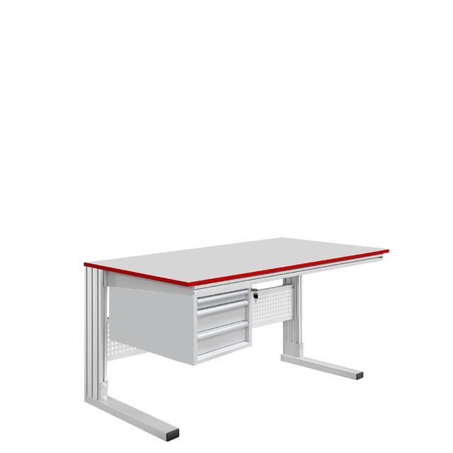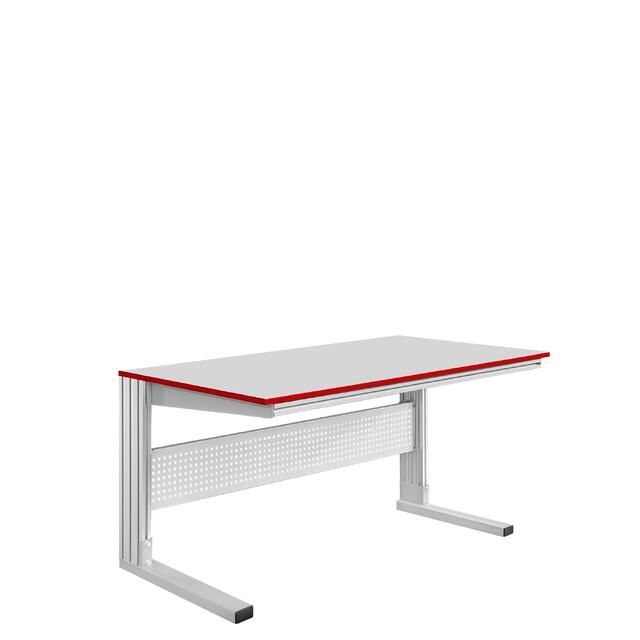 Столешница промышленного стола СПБ-КП изготовлена из ламинированного ДСП толщиной 25 мм. Износостойкое покрытие из промышленного пластика обладает высокой стойкостью к термическим и механическим нагрузкам. Цвет кромки стола — бордовый, соответствующий фирменному стилю компании.