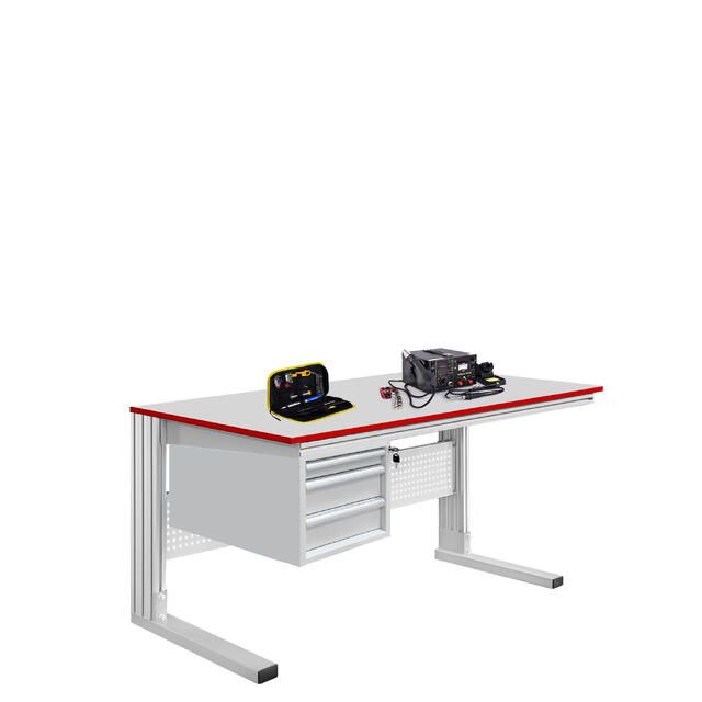 В антистатическом исполнении, согласно требованиям стандарта ГОСТ IEC 61340-5-1-2019, столешница на лицевой стороне имеет маркировку - знак ESD (Electrostatic sensitive device), обозначающий работу с материалами, чувствительными к электростатическому разряду.