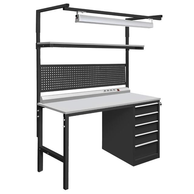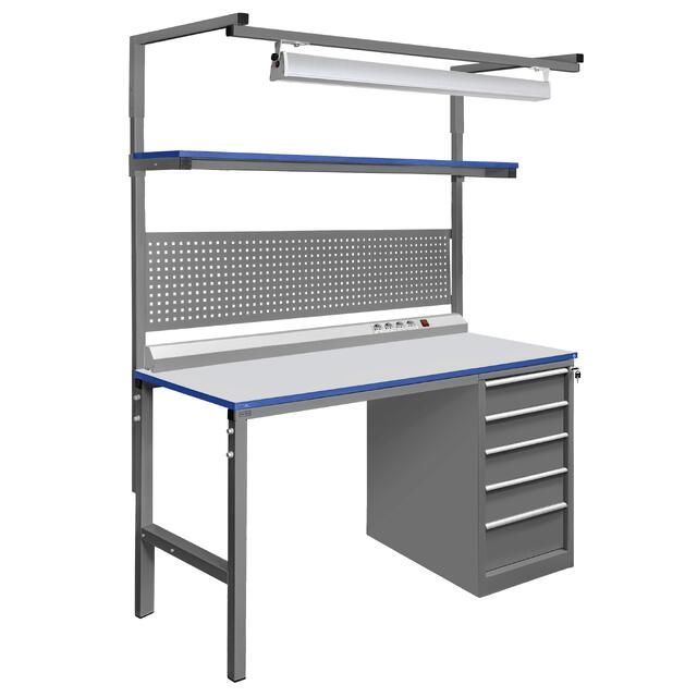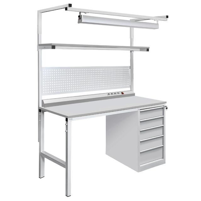 Распределенная нагрузка на стол — до 300 кг. Конструкция стола позволяет оснастить его дополнительным оборудованием.