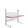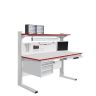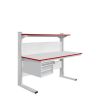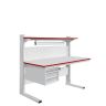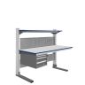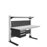 Каркас стола изготовлен из конструкционного профиля и металлических кронштейнов. Регулировка высоты столешницы и полок осуществляется по конструкционному профилю 135х45 мм с помощью металлических кронштейнов. Распределенная нагрузка на стол — до 200 кг. Конструкция стола позволяет оснастить его дополнительным оборудованием.