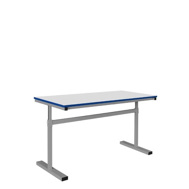 Металлический каркас стола выполнен из П-образного профиля, покрытого износостойкой порошковой краской светло-серого цвета RAL7035. Высота столешницы регулируется в пределах от 650 мм до 950 мм. Распределенная нагрузка на стол — до 300 кг.