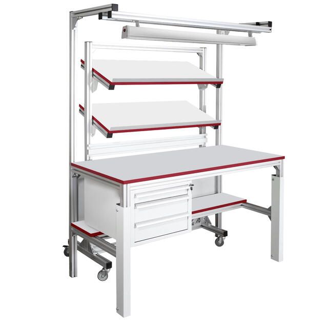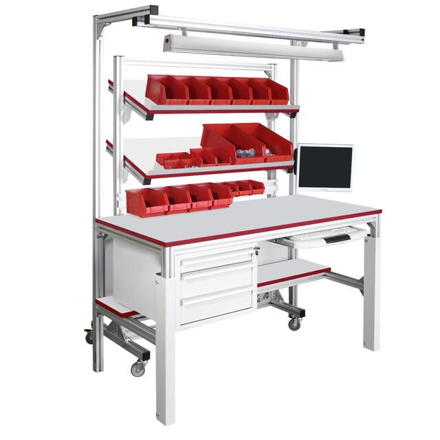 Стол СППС-КП с подкатной стойкой изготавливается в общепромышленном и антистатическом ESD исполнении.