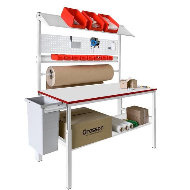 Стол упаковочный КСУ - продуманное и надежное решение в линейке промышленной мебели Gresson для упаковки и комплектации продукции различного назначения и сферы деятельности, от розничных интернет-магазинов и крупных сетей, до складов, логистических центров, участков сборки и комплектации. Комплект стола для упаковки КСУ разработан с учетом эргономики и удобства, предполагая нахождение всех упаковочных материалов в пределах легкой досягаемости. Использование комплекта стола делает рабочий процесс удобным, быстрым и точным, создавая комфортную рабочую атмосферу.