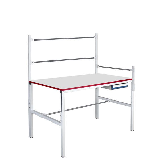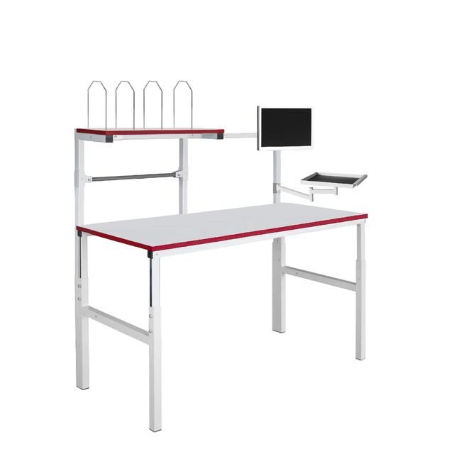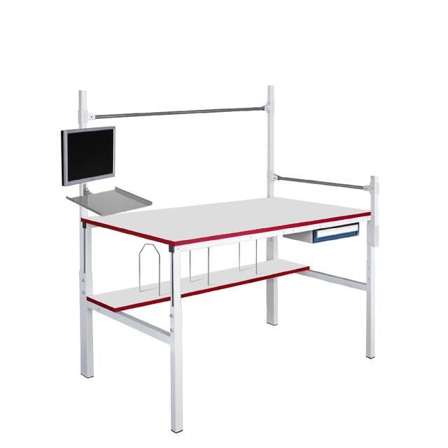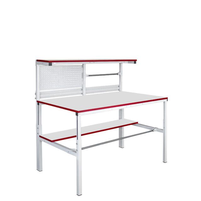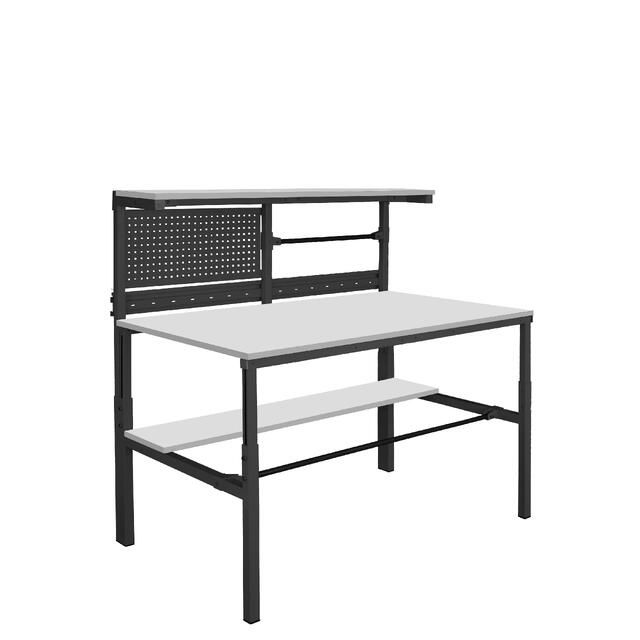Металлический каркас стола выполнен из П-образного профиля, покрытого износостойкой порошковой краской светло-серого цвета RAL7035. Высота столешницы регулируется в пределах от 650 мм до 950 мм. Распределенная нагрузка на стол — до 300 кг. Конструкция стола позволяет оснастить его дополнительным оборудованием.