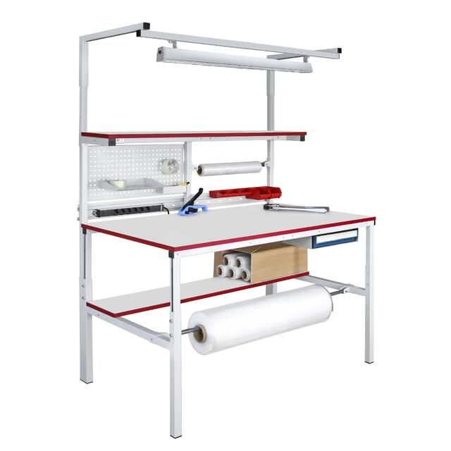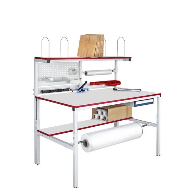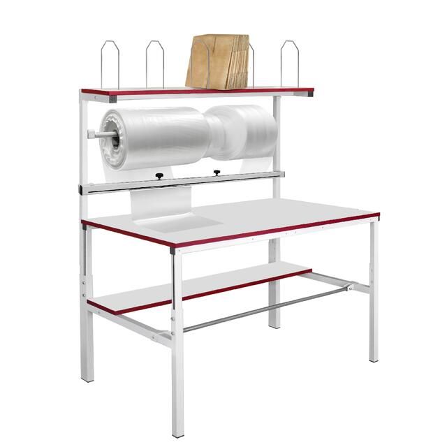 - держатель для рулона верхний в половину длины стола для хранения упаковочных материалов в рулонах над столешницей;