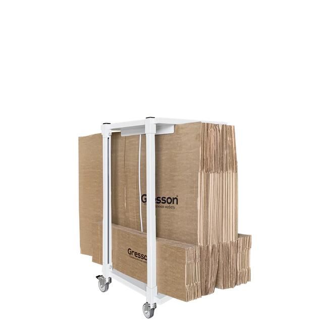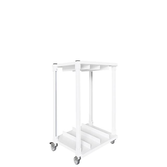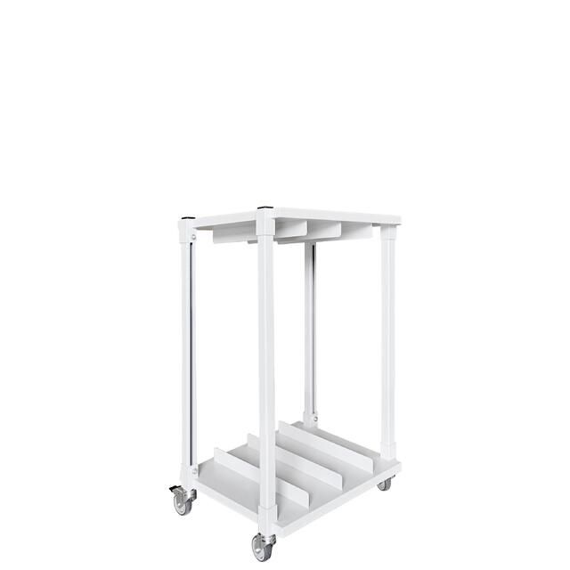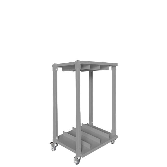 Cтойка СКМ используется для хранения и перемещения картонных заготовок, коробов. Полки имеют плавную, индивидуальную регулировку высоты и оборудованы перегородками для фиксации и разделения изделий. Верхняя полка имеет полость с резиновым покрытием для размещения вспомогательных, измерительных, канцелярских и иных принадлежностей. Стойка имеет четыре поворотных колеса (Ø 75 мм), два из которых оснащены тормозами. Каркас и полки выполнены из стали с эпоксидно-порошковым покрытием (Опционально RAL 7035). Макс. нагрузка на стойку — 80 кг. Стойку для картонных коробок можно разместить рядом с рабочим столом, на складе или в зоне комплектации и упаковки.