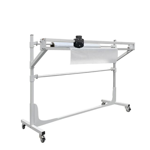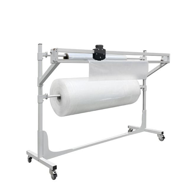 Стойка для рулонов с резаком используется для размещения и перемещения в рабочем пространстве рулонных материалов, таких как полиэтиленовая и воздушно-пузырчатая пленка, крафт бумага. В комплект стойки входит держатель для рулона и резак. Регулировка высоты рулона и резака производится с помощью кронштейнов, размещенных на боковых стойках. Стойка изготовлена из металлического профиля шириной 35 мм и покрыта износостойкой порошковой краской RAL-7035.