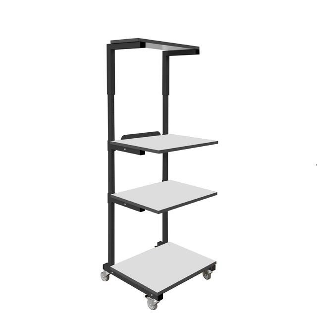 Стойка оператора мобильная СОМ — это универсальное, мобильное решение в линейке промышленной и антистатической мебели торговой марки Gresson®️. Стойку оператора СОМ можно использовать в различных отраслях промышленности, от учебных заведений, НИИ и лабораторий, сервисных, логистических и сортировочных центров, до складских помещений и зон выдачи товаров. Стойка СОМ имеет три полки габаритом 470*600 мм, на одной из которых установлен задний ограничитель, и одну верхнюю полку габаритом 300*600 мм. Г-образный кронштейн верхней полки предусматривает увеличение высоты стойки от 1600 до 1900 мм. Все полки (кроме нижней) имеют плавную регулировку высоты. Мобильная стойка оснащена четырьмя колесными опорами, две из которых с механизмом фиксации. Материал каркаса — сталь, покрытая износостойкой порошковой краской. Прочная и долговечная конструкция. Материал полок — ДСП, покрытая прочным износостойким пластиком.