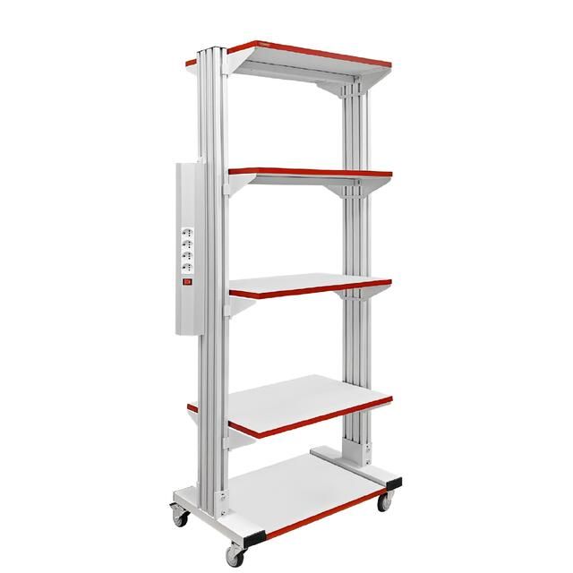 Стойка подкатная из конструкционного профиля СМП-КП предназначена для размещения приборов и оборудования и их дальнейшего перемещения в рабочей зоне. В комплект поставки входит электропанель в алюминиевом корпусе на 4 розетки с выключателем питания.