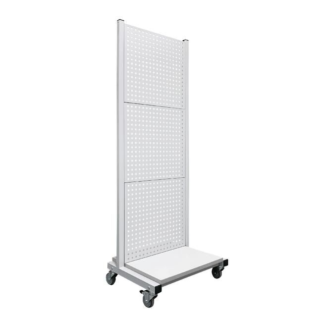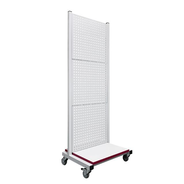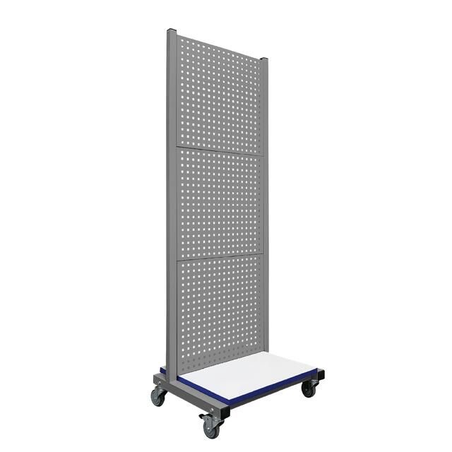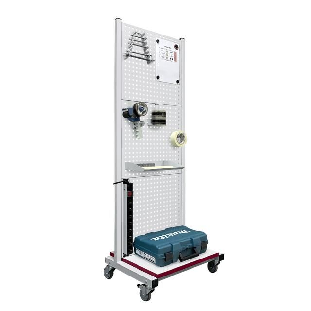 Стойка подкатная универсальная СПФ используется для хранения и перемещения инструментов, материалов и комплектующих в рабочем пространстве. С помощью крючков для инструментов КР на подкатной стойке возможно разместить различный инструмент: отвертки, пинцеты, сверла, гаечные и шестигранные ключи, пассатижи, молотки и киянки, канцелярские принадлежности и другой ручной слесарно-монтажный инструмент. В стандартной комплектации стойка поставляется в комплекте с панелью перфорированной ППМ (3 шт.). Возможно зеркальное (двухстороннее) размещение перфопанелей. Крючки для инструмента возможно подобрать в разделе «Дополнительное оснащение рабочих мест». Стойка мобильная имеет металлический каркас, окрашенный порошковой краской.