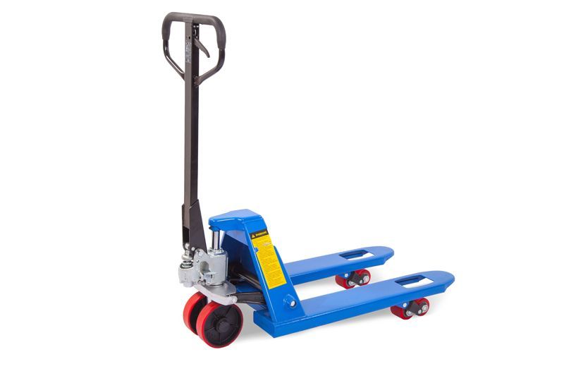 Данная модификация тележки RHP выполняется с укороченными вилами. Длина вил составляет 800 мм для работы с небольшими паллетами либо работа по короткой стороне. Грузоподъемностью 2,5 тонны – для обработки грузов на стандартных евро паллетах. Износостойкие полиуретановые колеса увеличивают срок эксплуатации тележки до замены колес.Гидравлические тележки TOR RHP– это серия очень надежных тележек. Серия специально предназначена для интенсивной работы на предельных нагрузках. Серия состоит из нескольких видов тележек: стандартная под евро паллеты, низкопрофильная, узковильная, длинновильная, коротковильная, увеличенной грузоподъемности, с разными типами колес. Хотите купить качественную рохлю и просто работать, не думая о ремонте – серия RHP для вас. При соблюдении правил эксплуатации тележка RHP прослужит очень долго. Гарантия на них 1 год + 1 год бесплатного сервисного обслуживания. Данная модификация тележки RHP выполняется с укороченными вилами. Длина вил составляет 800 мм для работы с небольшими паллетами либо работа по короткой стороне. Грузоподъемностью 2,5 тонны – для обработки грузов на стандартных евро паллетах. Износостойкие полиуретановые колеса увеличивают срок эксплуатации тележки до замены колес.Подробные технические характеристики тележки можно посмотреть ниже в разделе технические характеристики. При выборе гидравлической тележки обращайте внимание на ее основные эксплуатационные характеристики, которые важны для вас. Если нужна консультация специалиста, воспользуйтесь удобным для вас способом связи для получения исчерпывающей информации по выбору тележки.