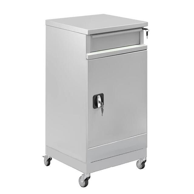 Корпус металлической тумбы изготовлен из листового металла толщиной 1 мм, покрытого износостойкой порошковой краской светло-серого цвета RAL7035 с высокой стойкостью к химическим, термическим и механическим нагрузкам.