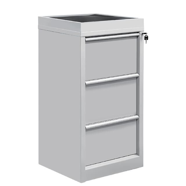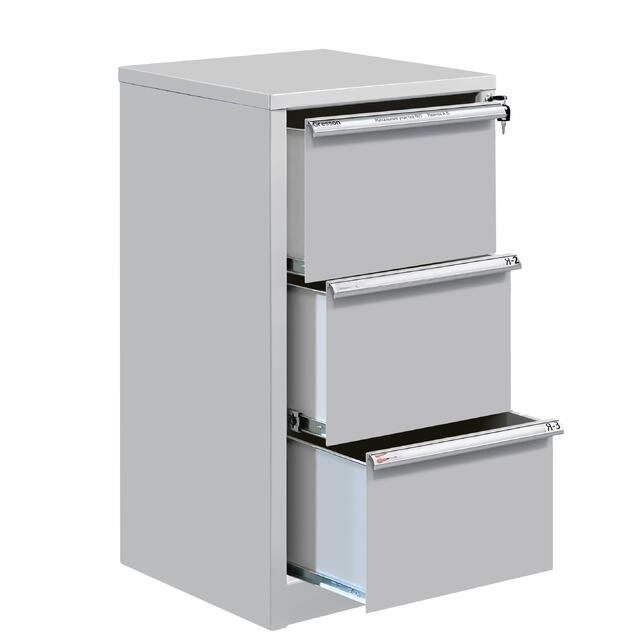 Стационарные тумбы оборудованы центральным замком для индивидуального доступа. Каркас и ящики изготовлены из листового металла для увеличения эксплуатационного ресурса и повышения надежности. Ручки изготовлены из алюминиевого профиля с анодированным покрытием и боковыми пазами для установки обозначения (маркировки) ящиков по их прямому назначению (подразделение организации, документация, инструменты, материалы и т.д.).