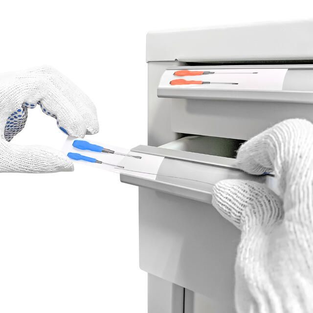 - Прозрачные полоски для ручек тумбы, обеспечивающие фиксацию маркировки (обозначения) ящика, поставляются в комплекте