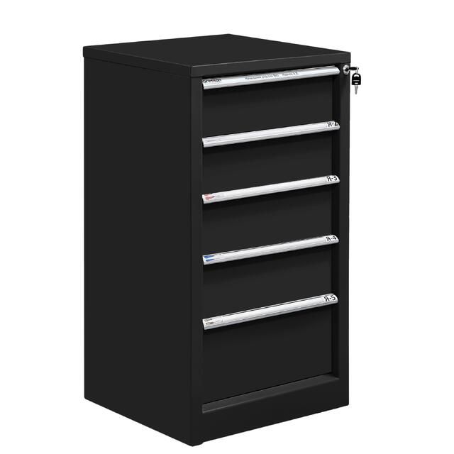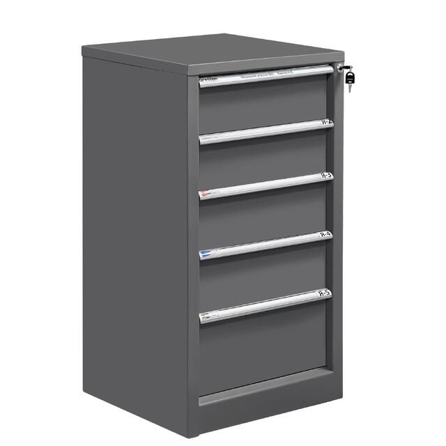Тумба металлическая ТС-5 может быть использована для работы и организации хранения материалов как в составе рабочих мест, так и в виде отдельно используемой единицы. Ящики металлической тумбы имеют различные размеры, что позволяет организовать в них хранение как крупных материалов и инструментов, так и мелких комплектующих.